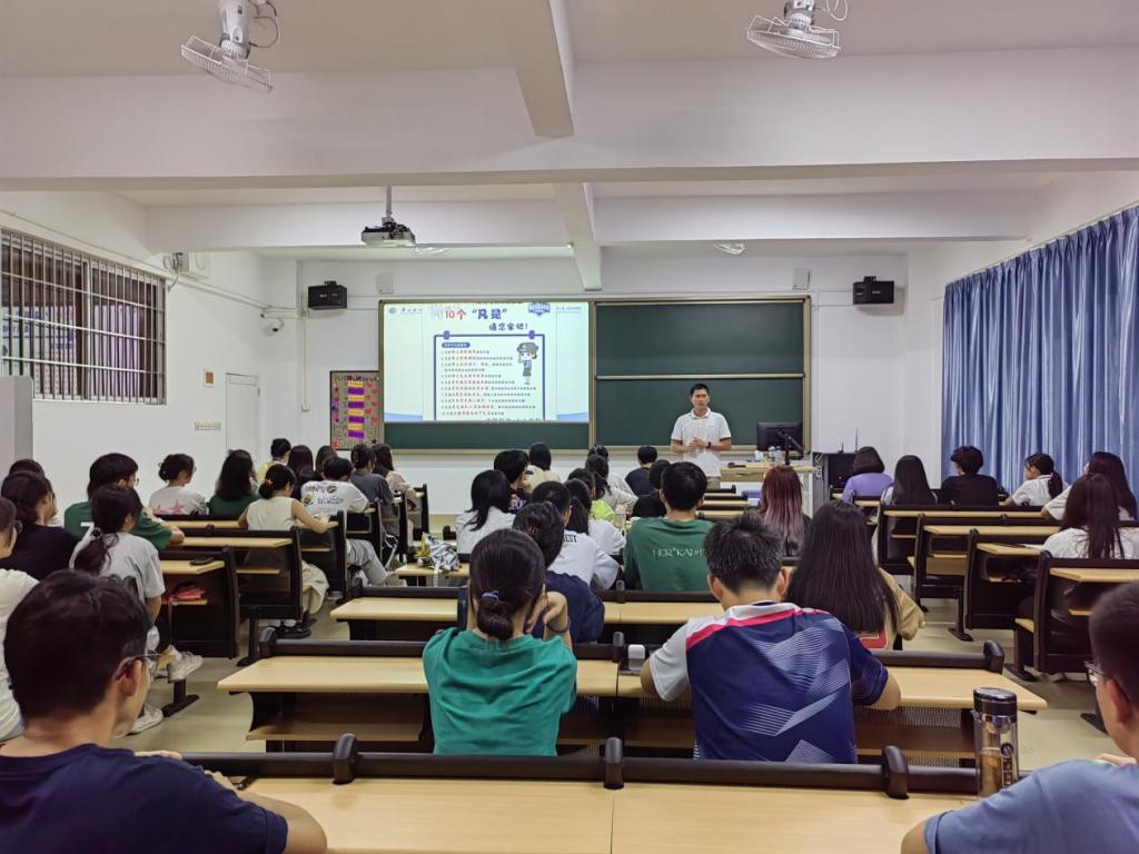 会上,刘书记强调了学校里开展学风建设的必要性和重要性,希望全体班干部与同学们一起努力,打造良好的学风校风。随后,刘书记还强调了预防诈骗的必要性,就身边发生的被骗事件和近期校园发生的诈骗案例跟同学们进行了分享,要求学生提高警惕,预防诈骗。