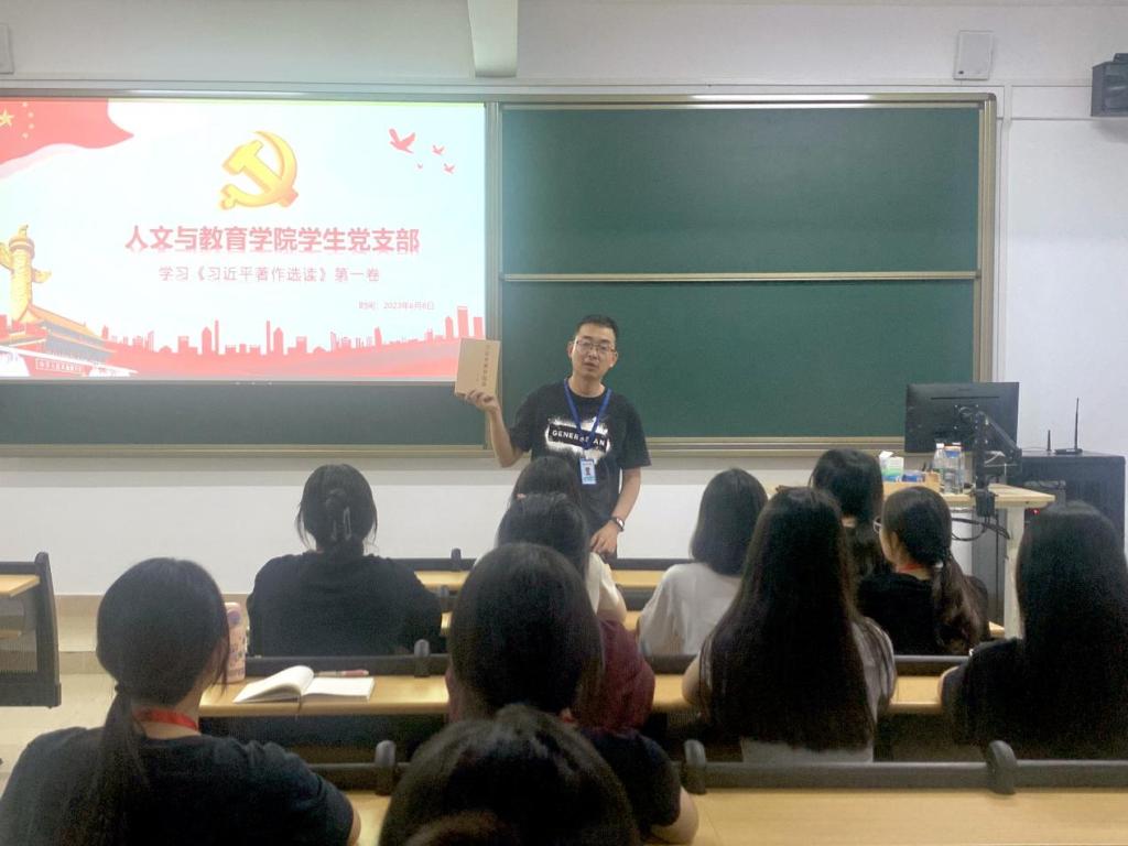 为深入开展学习贯彻习近平新时代中国特色社会主义思想主题教育,6月8号下午,suncitygroup太阳集团学生党支部书记陈新喜在7栋402教室组织学生党务人员和部分积极分子集中学习《习近平著作选读》第一卷。