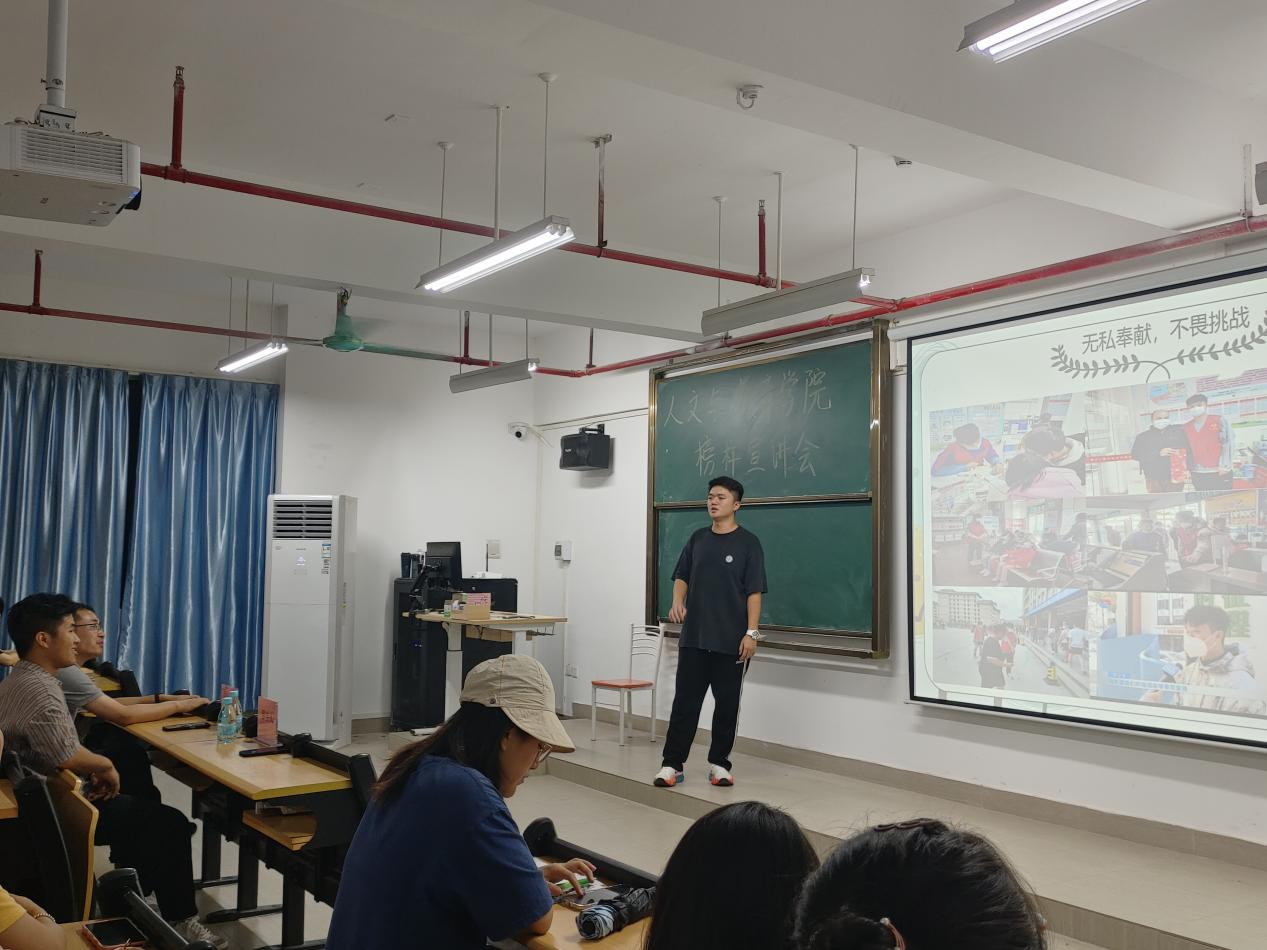 活动开始,组织员陈新喜介绍了此次活动的意义和学院学生榜样宣讲团的筹备情况,号召在社会实践、志愿服务、学业表现中有突出能力的同学们报名宣讲团,跟同学们分享经验。随后智能制造与电气工程学院团总支学生会执行主席罗宇人进行榜样宣讲,他主要从志愿服务和队伍建设方面进行经验分享,详细地介绍了他在校期间参加的两次暑期社会实践活动和在家进行的各种志愿活动。学校十大年度人物温岳峰从学业表现和学科竞赛分享个人在校期间的经验收获。整场活动氛围十分热烈,同学们积极提问,榜样学生耐心解答同时给出自己的见解与想法,受到学生的一致好评。