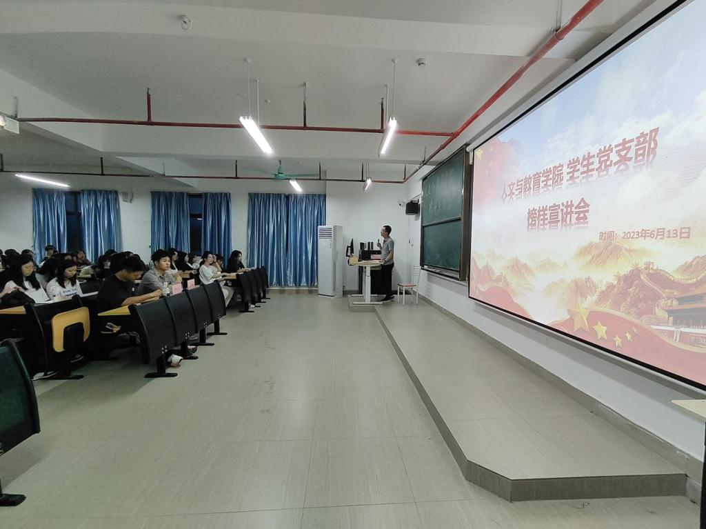 为深入学习宣传贯彻党的二十大精神,推动学习贯彻习近平新时代中国特色社会主义思想主题教育走深走实,落实立德树人根本任务,营造优良学风氛围,充分发挥优秀学子的榜样先锋示范作用,掀起看榜样、学榜样、做榜样的热潮,suncitygroup太阳集团学生党支部于6月13日晚在13栋603教室举办学生榜样宣讲活动。此次活动由党总支组织员陈新喜老师主持,学院200多名入党积极分子参加此次宣讲活动。2023年学校学生十大年度人物温岳峰和智能制造与电气工程学院团总支学生会执行主席罗宇人受邀进行榜样宣讲。