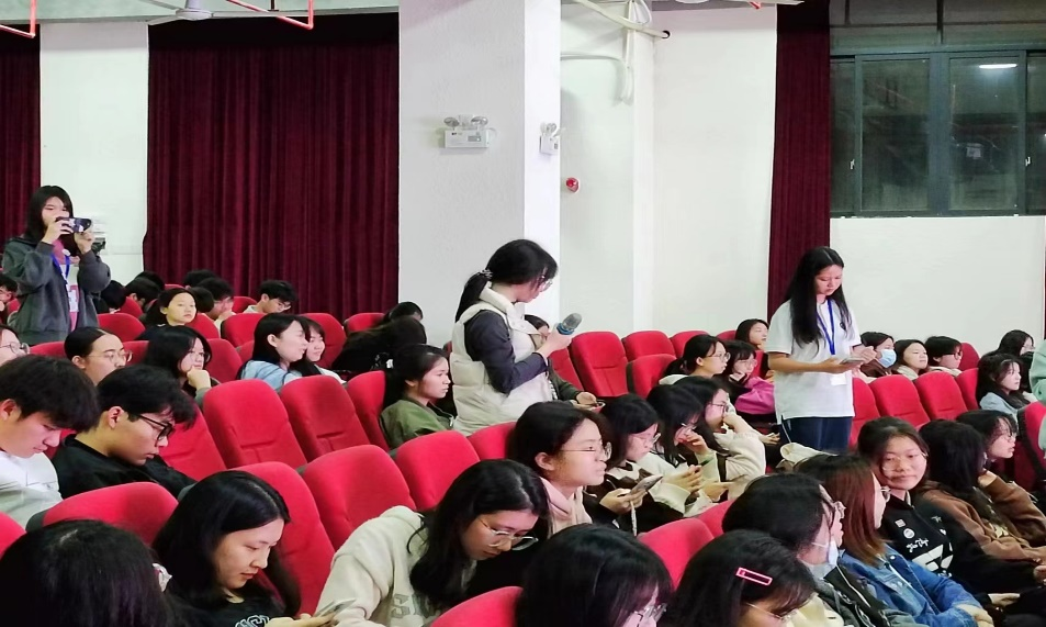 提问环节,同学们踊跃发言,刘亮书记和黄静主任针对同学们提出的有关教师资格证考试、岗位招聘、学科选择等问题进行耐心回答,并重点提及选择学科方向时应遵循两个原则。第一个是兴趣原则,第二个是胜任原则,无论选择哪一个方向,如果超出自己的能力范围,应慎重进行权衡并选择是否进行挑战。