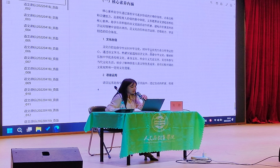 会上,黄静主任带领学生观看了选课培养方案,并对方案内容中的小学教学计划进行分析,再由浅及深,向在场的同学们介绍语数英三科的选课内容。黄静主任强调小学教育专业的人才培养方案设定了集中的实践课,有对应的专业实训,对锻炼同学们的实践能力将会起到良好的作用,希望同学们在选课问题上保持顺其自然的心态,减少焦虑情绪,积极与父母或老师沟通交流。