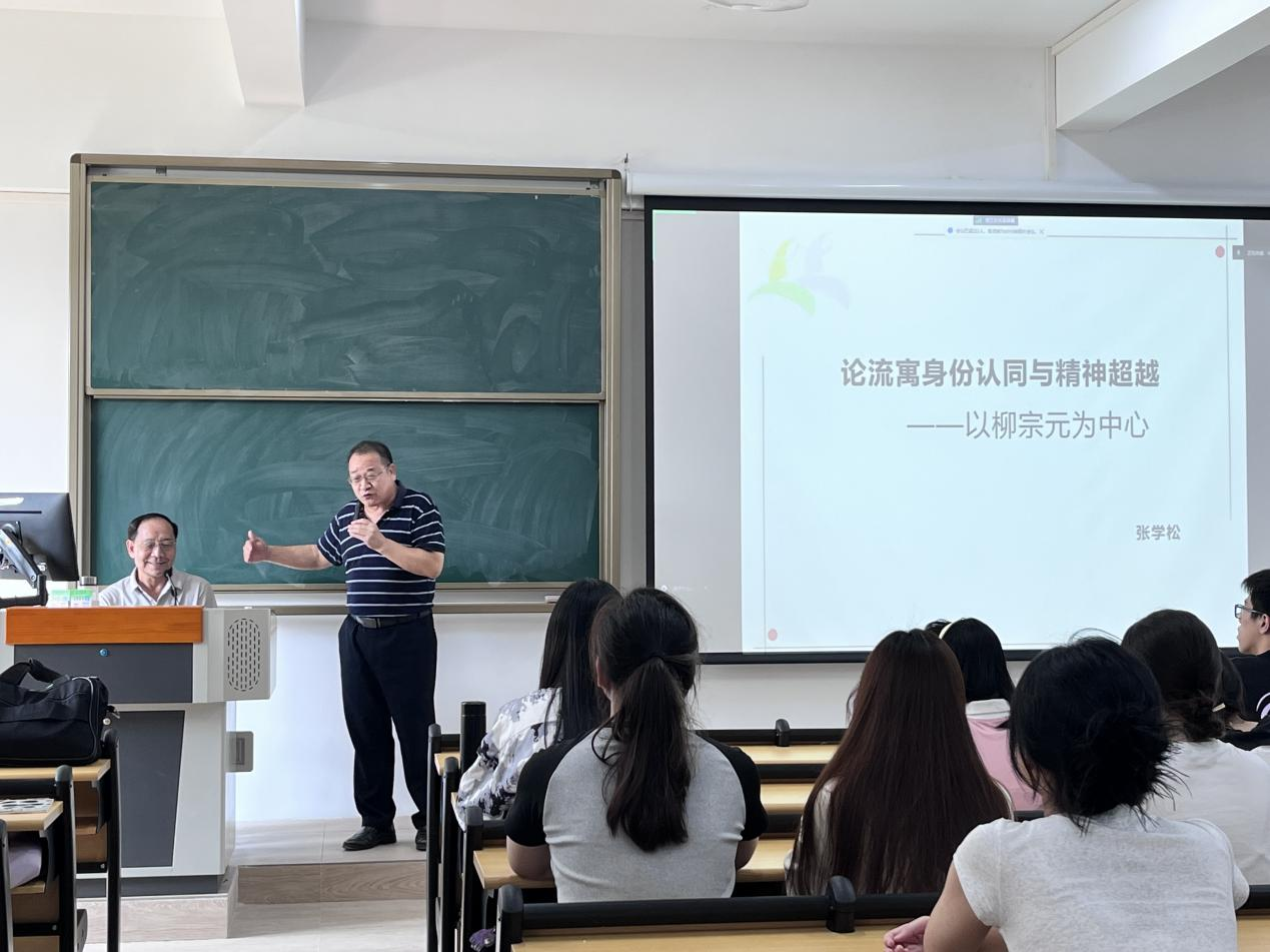 9月21日下午,广州理工学院资深教授、“帽峰学者”张学松先生专程前往惠州校区为suncitygroup太阳集团的新生开展专题讲座《论流寓者身份认同与精神超越——以柳宗元为中心》。此次讲座地点为教学楼218课室,讲座由suncitygroup太阳集团陈南先教授主持。