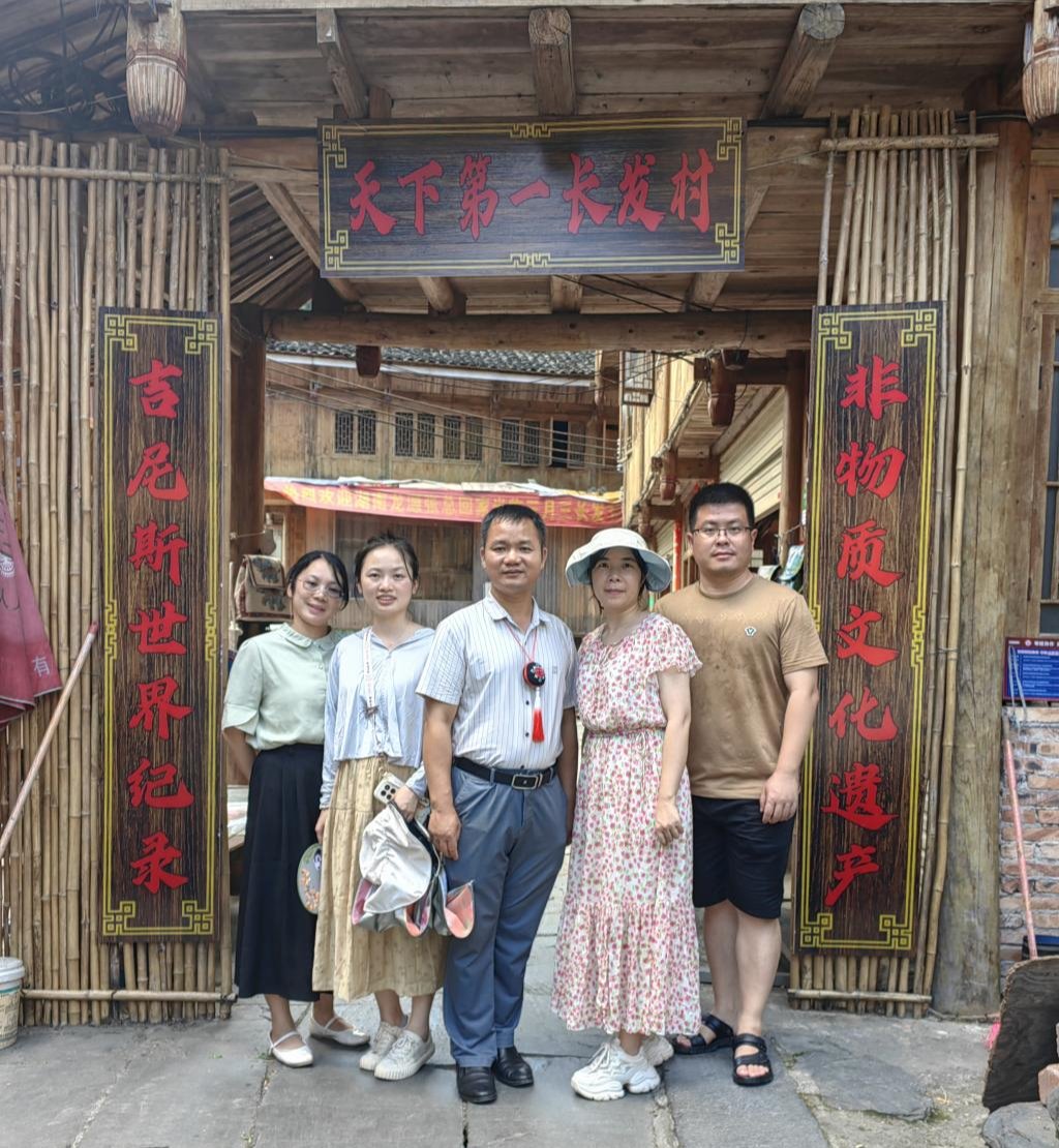 2024年7月20日上午8点,“十四五”规划建设教材项目“岭南民族民间艺术鉴赏”调研团队在覃守达教授带队下,从广州理工学院白云校区出发,历时三天(7月20-22日)依次实地调查了广西梧州市万秀区龙母庙、贺州市富川瑶族自治县新华乡虎马岭屯瑶族芦笙长鼓舞传承基地、桂林市龙胜各族自治县和平乡黄洛瑶寨,采访相关非遗传承人、学者,搜集并整理瑶族民间艺术第一手材料。