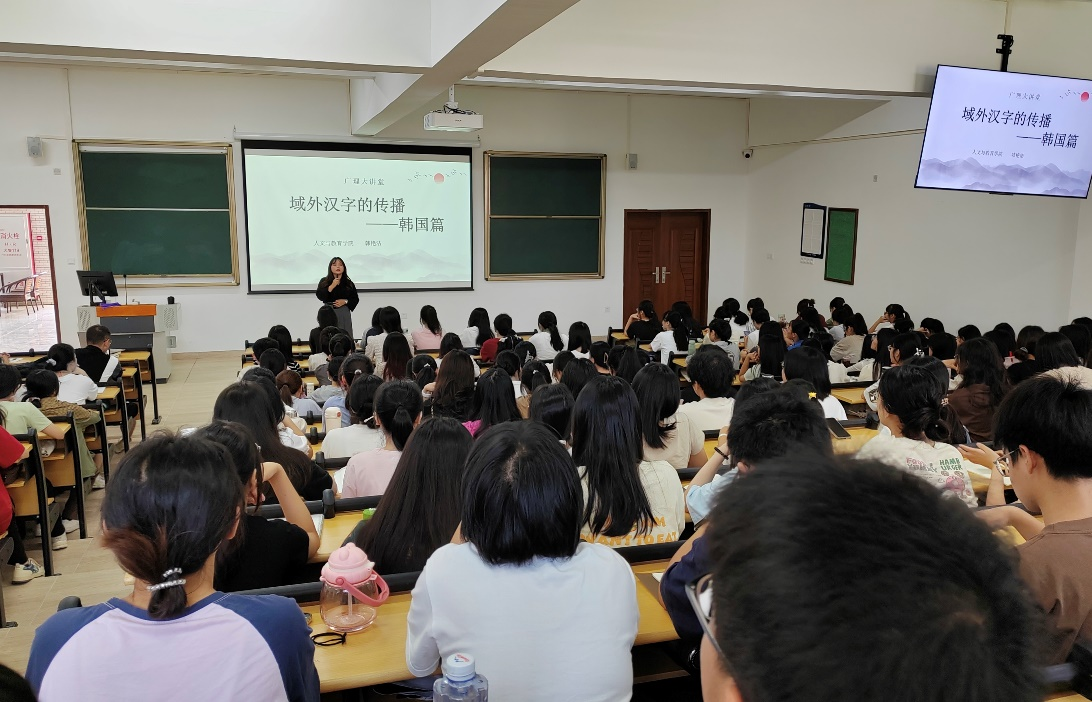 为了认真贯彻落实《新时代爱国主义教育实施纲要》,2023年10月26日在广州理工学院惠州校区开展了主题为“域外汉字的传播——韩国篇”的文学讲座。本次讲座的主讲人是来自本校文学系的韩艳洁博士,同时邀请到了suncitygroup太阳集团副院长陈南先教授做开场主持,并由suncitygroup太阳集团吴舒静教授进行了总结评价。