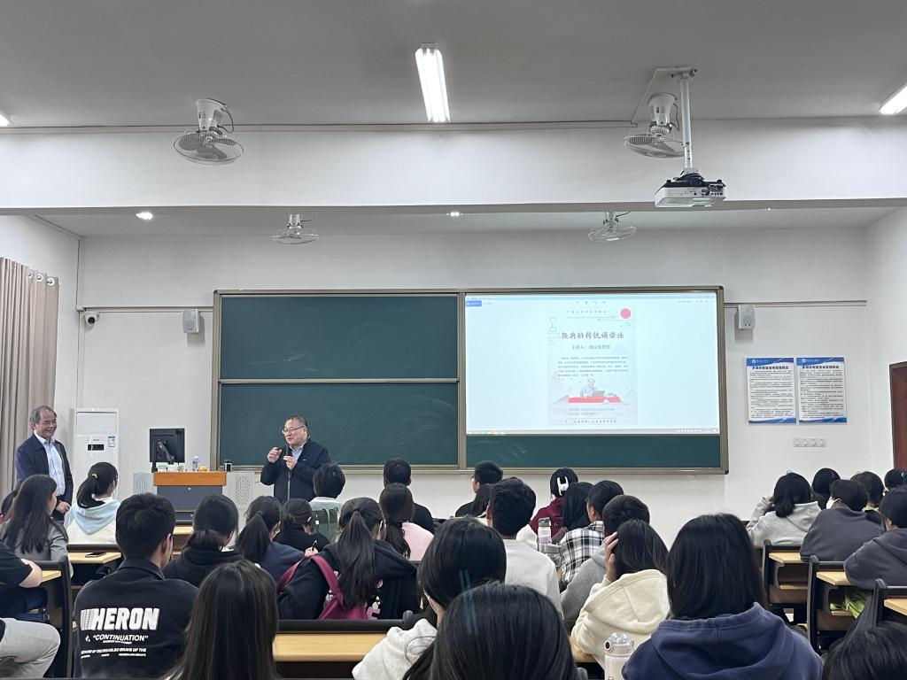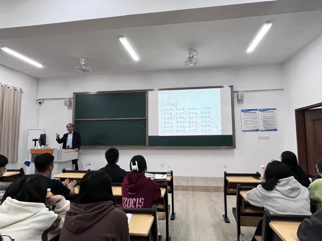 12月7日下午,广州理工学院suncitygroup太阳集团邀请到广东技术师范大学文学与传媒学院刘汉光教授在惠州博罗校区1栋214教学楼为学生进行精彩讲座——《经典的传统诵读法》,本次讲座由陈南先教授主持。