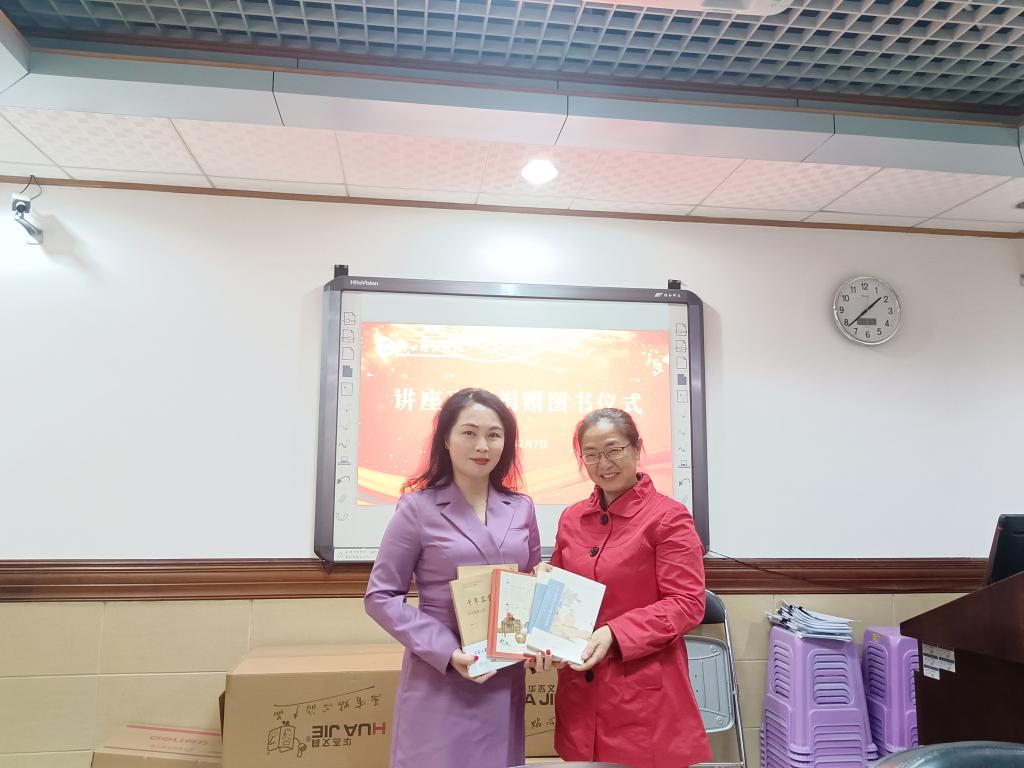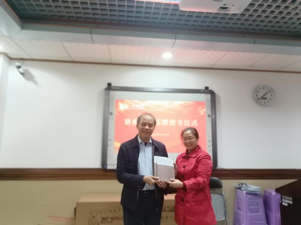 仪式上,周卫忠院长为两位教授颁发客座教授聘书。图书馆副馆长周武华代表图书馆接受陈菊芬教授和刘汉光教授的图书捐赠。