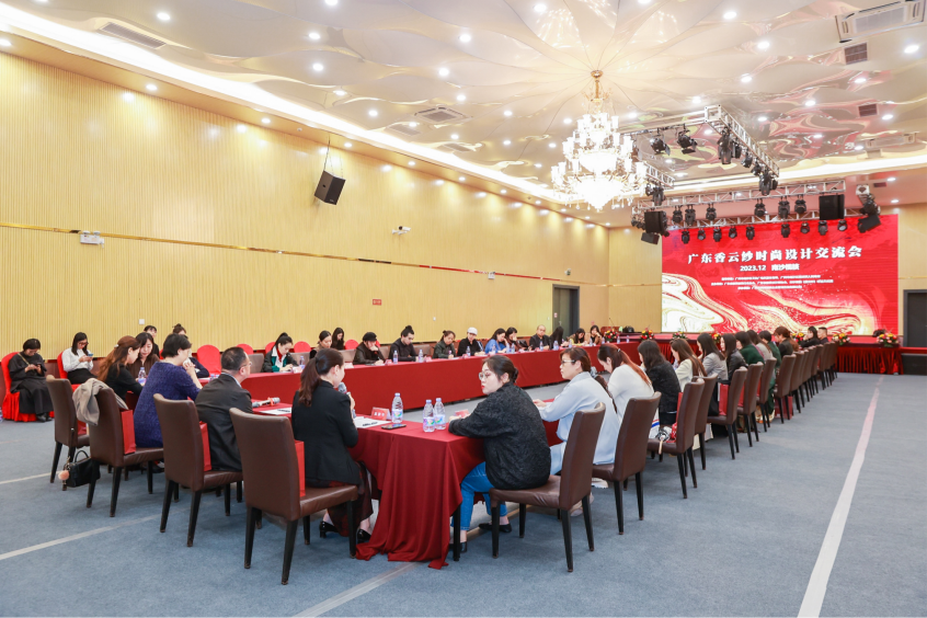 日前,我院谢嘉妍老师受广东省服装行业协会邀请出席2023南沙榄核香云纱时尚文化节的广东香云纱设计交流会,与众多香云纱产业大咖学习交流,洽谈合作。