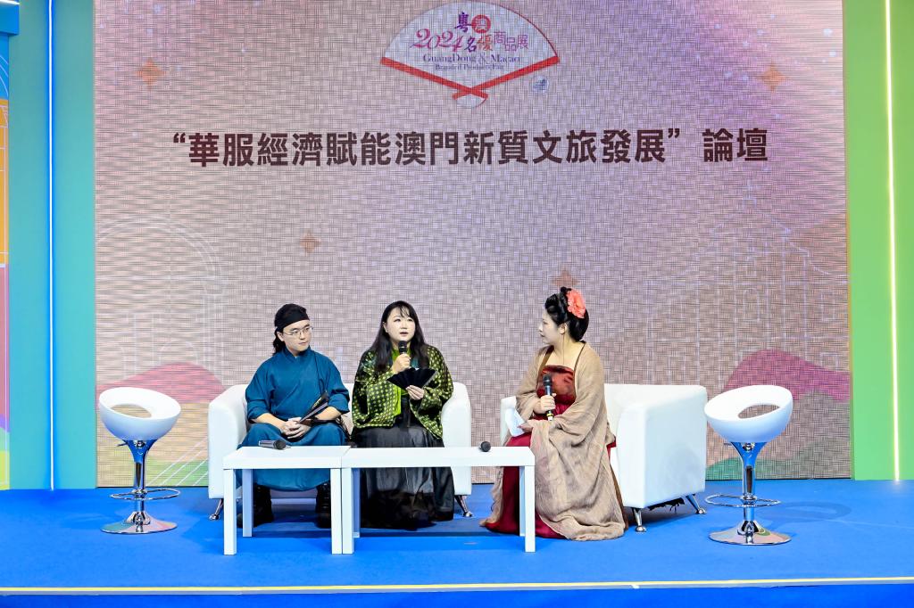 2024年07月25-28日,由广东省商务厅、澳门招商投资促进局举办的2024粤澳名优商品展在澳门威尼斯人金光展览馆D馆成功举办。我院谢嘉妍老师受邀出席并致辞,同时受聘为澳门新经济协会国潮工作办公室华服委员会主任,于28日上午主持了首届国潮经济论坛。该论坛有来自香港、澳门、广州、深圳等城市汉服社团负责人及知名汉服企业代表出席,分享了众多关于以汉服为例的华服赋能经济案例,并为澳门通过华服赋能新质文旅的国潮经济建言建策,畅想未来,共绘蓝图。