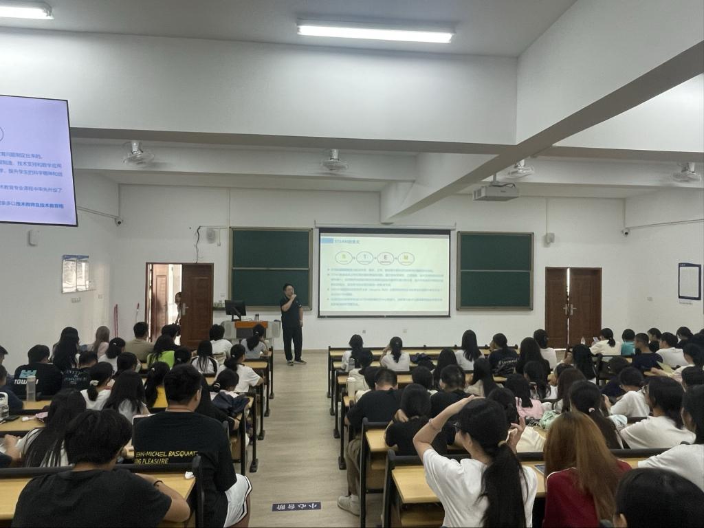 10月17日,我院教育系副主任于智慧老师在惠州校区24级新生开讲了别出心裁的教育讲座《融入传统文化的STEM教育的设计与实施》,现场座无虚席。于老师先是给学生们讲解了STEM教育的概念,在科学、技术、工业、数学的基础上结合艺术发展,通过他多年逐步深入的研究,引发学生们如何将我国优秀传统文化融入STEM教育的思考,并以实际案例“花鼓制作”“灯笼制作”等非遗技艺讲解STEM教育课程研究的具体方法。于老师的演讲引人入胜,学生们在讲座结束后争先恐后地提问关于STEM教育的研究如何开展。
