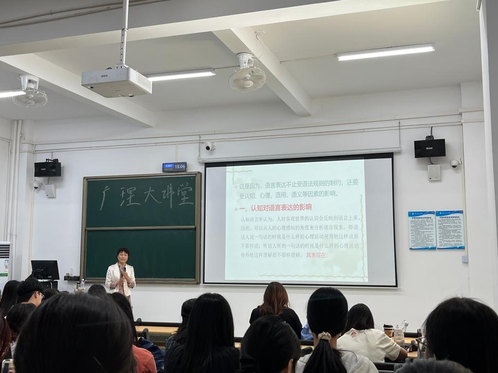 整场讲座中,黄晓雪教授以严谨的学术观点结合生动的实例,带领在场的师生感受了语言的奥妙与深度。她的讲解让大家深刻理解到,语言不仅仅是沟通的工具,更是文化和思想的表达。讲座在热烈的掌声中圆满结束。黄教授此次讲座不仅启发了在场师生,也为语言教学和日常表达带来了新的视角与思考。