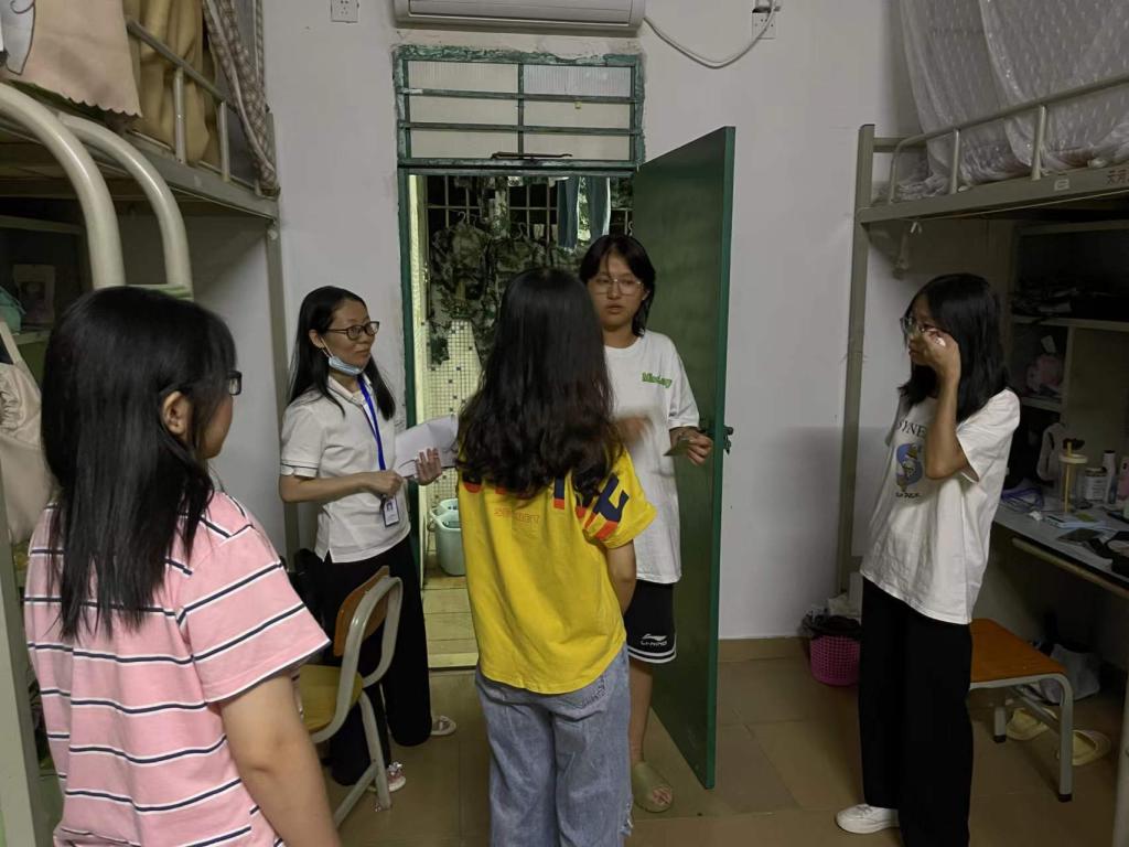 9月6日晚,为帮助新同学适应大学生活,我院刘书记和辅导员深入宿舍,关切宿舍环境及新生感受,及时为新生解答疑惑,加强学生安全防范意识及防诈骗意识,在落实“大”爱的同时也向学生传递了“小”爱。