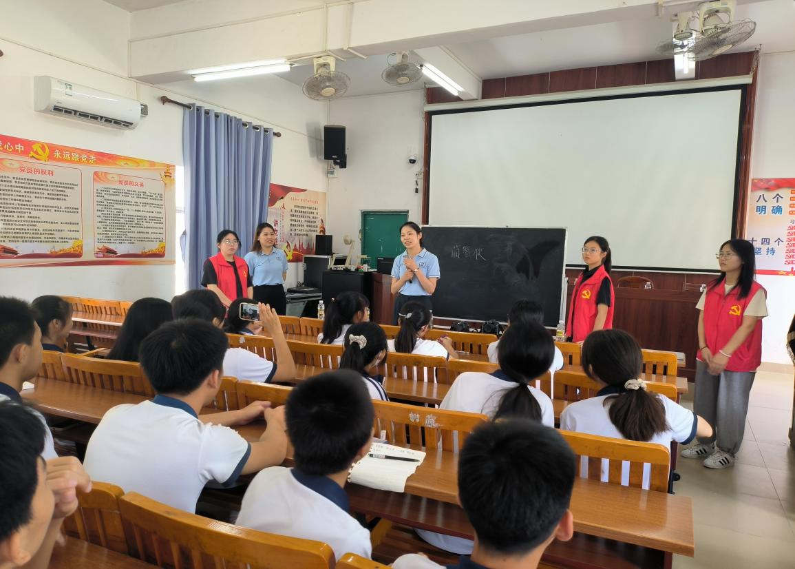互动提问环节,同学们踊跃提问表现出对湛江雷州以外世界的好奇与向往,对未来大学生活的期待。除此之外,同学们也很热情地与我院实践团队交流雷州文化,在交流中分享雷州文化是“天南重地”的区域文化,在南粤历史文化中占有重要的地位,在漫长的历史长河中,由于雷州半岛位居祖国大陆南端边陲,优秀的中原文化广泛吸收融会了古老的南越、俚僚和流入文化,互相碰撞、融合,不断充实、更新,逐步形成独放异彩的雷州文化。从同学们口中讲出来的雷州,有着源于血脉与传承的独特的文化风采,实践队在感受雷歌雷剧、雷州傩舞、雷州石狗等雷州非物质文化遗产魅力的同时,领悟到一方水土养一方人的情怀。