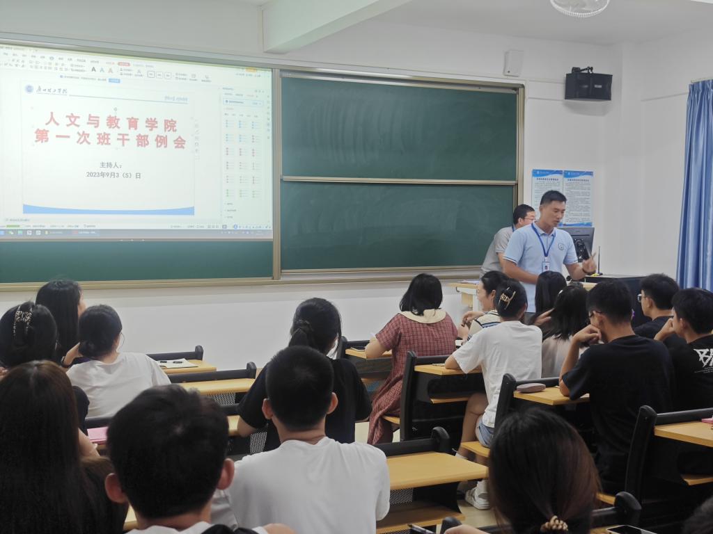 首先,陈新喜老师向全体班干部介绍了学校环境的变化,欢迎大家的顺利返校,并对新学期的具体工作进行了讲解和指导,为接下来班委工作的顺利展开做好了铺垫。之后刘亮书记向大家介绍了学院的发展计划、专业设置、以及新学年的学院学生工作计划,并对班干部新学期的工作提出了要求,鼓励班干部再接再厉,充分发挥班干部的先锋模范作用,打造具有凝聚力和归属感的班集体,为新学期学院的发展贡献青春力量!