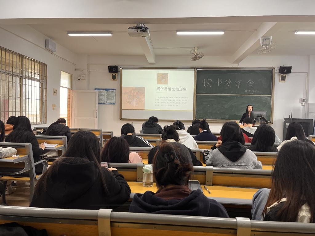 这次分享会主体是本学院全体学生。会上,同学们一一介绍了自己推荐的书籍,从经典著作到人文专著,从情节分析到读书心得,在交流分享中互相启发、在探讨中拓展思维,不断将读书收获转化为推动汲取学习成效的强大动力,现场气氛轻松热烈。