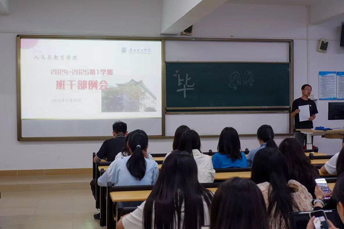 2024年11月10日18时,suncitygroup太阳集团于7栋318教室召开了第五次班干部例会。本次会议由我院学工组长陈新喜主持,各班班长及辅导员老师出席,共同就即将开展的“三全育人”素质周相关事宜进行深入探讨与部署。