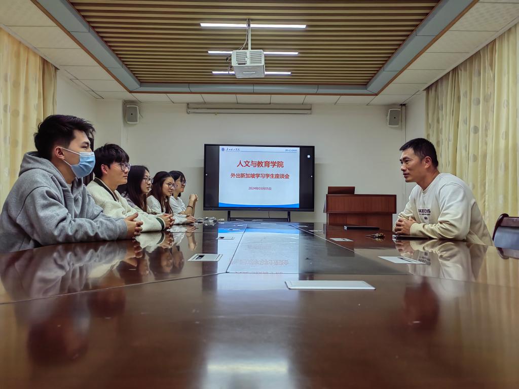 为了解我院学生寒假期间前往新加坡南阳理工大学研学情况,3月5日下午,我院在7栋122会议室召开新加坡研学学生座谈会。这次座谈会由辅导员陈新喜主持,党总书记刘亮参加。