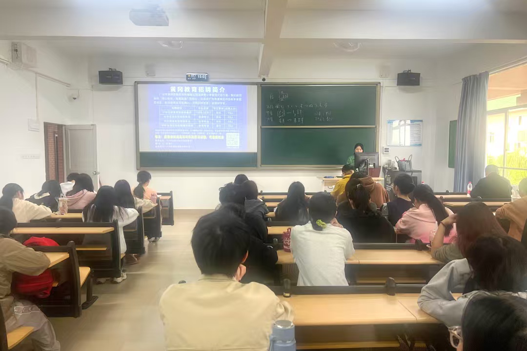 宣讲会上,广州市黄冈教育详细介绍了公司概况、岗位需求及人才培养体系。该公司是一家在中小学教辅领域深耕了十余年的教育机构。此次针对我校汉语言文学、英语、小学教育等专业特点,精准提供了小学至初中阶段的各类学科辅导教师岗位数十个,与我院相关专业人才培养方向契合度高,为学生提供了学以致用的实践机会。