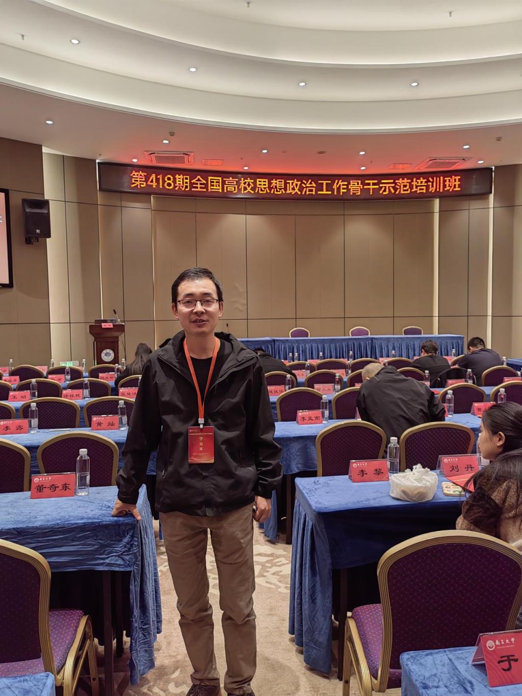 11月22日-24日,由教育部思想政治工作司主办,高校思想政治工作队伍培训研修中心(南昌大学)承办的第418期全国高校思想政治工作骨干培训班在南昌大学前湖校区国际交流中心举行。来自全国高校辅导员100余人参加培训班。suncitygroup太阳集团辅导员陈新喜参加此次培训班。