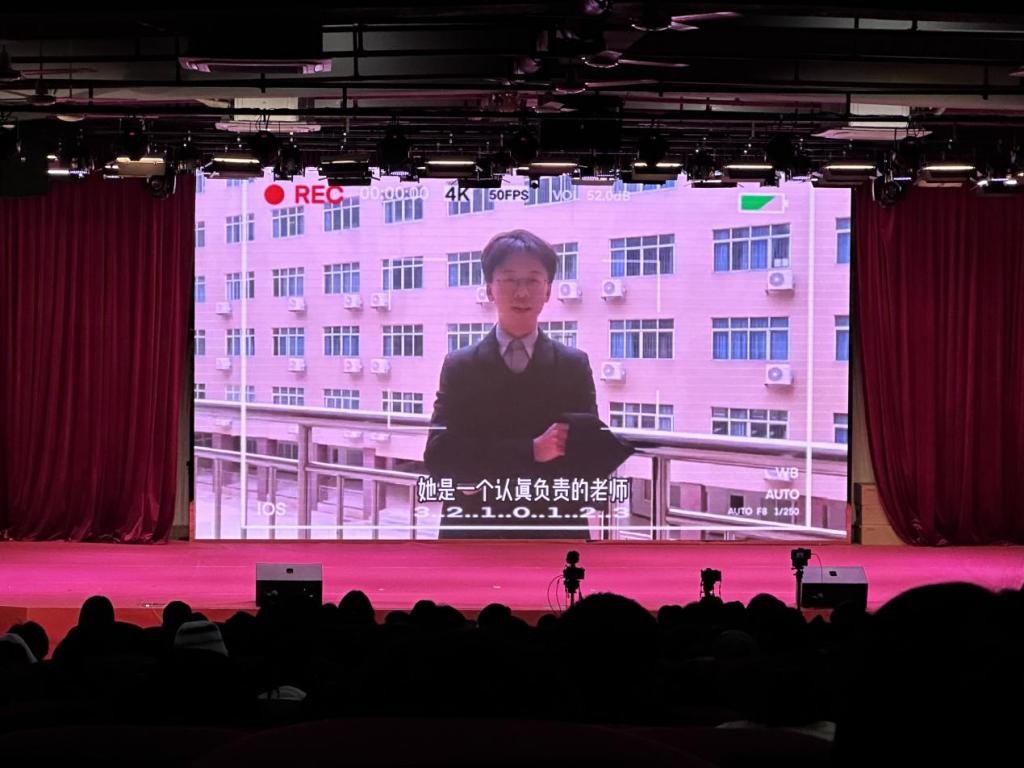 典礼以学生代表热情洋溢的致辞拉开了帷幕,激情的发言表达了学生们对所有辛勤付出的教师的敬意和感谢。紧接着,学生会执行主席宣读了表彰决定,并对获奖的教师表示热烈的祝贺。随后,颁奖环节开始,观众们通过一段精心制作的视频回顾了韩艳洁老师的教学历程和成就,整个报告厅洋溢着温馨的氛围。
