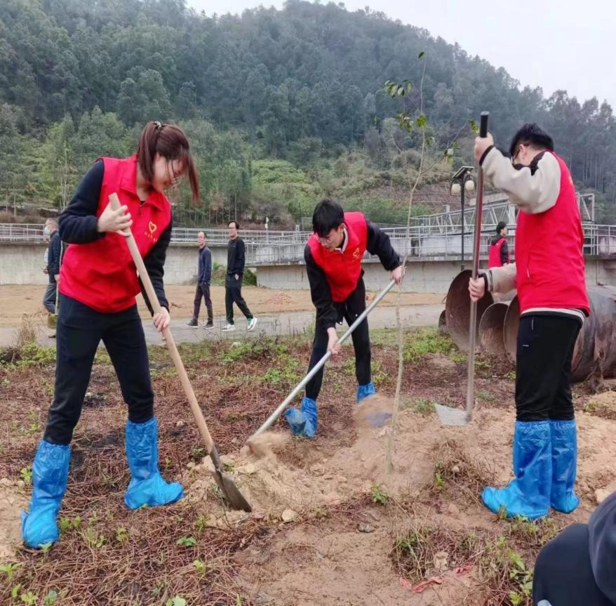 2024年3月9日上午,suncitygroup太阳集团23级中文1班7位同学赴义和云步村参加由共青团博罗县委员会、博罗县志愿者联合会与曙光社区发动青年志愿者的植树节义务植树活动。