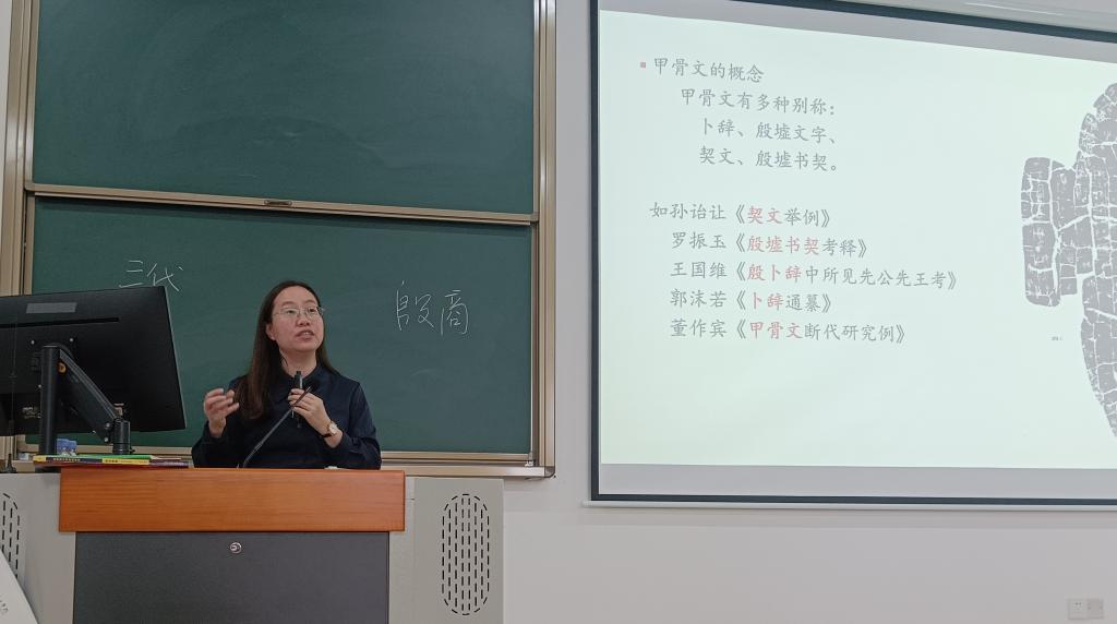 甲骨文是华夏文明的重要根脉之一,是汉字的辉煌源头,与“敦煌遗书”“居延汉简”“明清档案”并列为“二十世纪中国四大考古发现”。讲座中,汪美葵博士以扎实的古文字学研究功底,向同学们娓娓道来,讲述甲骨文从清末某位文官一次意外的发现,到今天成为国家考古发掘重大工程的曲折艰辛的发展历程。甲骨文的发掘与研究,最初只是文人金石搜集雅趣,在清末民初接受了现代科学方法的洗礼,历经罗振玉、王国维、董作宾、郭沫若诸前贤的开拓探索,从民国时期中央研究院史语所的初步田野发掘,一路薪火相传,到中华人民共和国成立后的历次大规模系统性考古发掘,如今终成一门体系博大、内容深邃、成果辉煌的综合了古文字学、殷商断代史、田野考古、书法艺术等多元学科维度的现代知识门类。