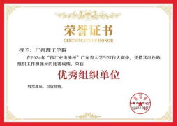在高度重视教师教学质量的同时,学院非常重视学生的写作能力的培养,为激励了学生讲好中国故事、提升写作能力,推动写作类专业课程的发展,积极组织学生参加学会举办的2024 年“伟江充电池杯”广东省大学生写作大赛。我校学生围绕征文主题踊跃投稿,在2024年3-4月的校内初赛期间,共征集各类参赛稿件448篇。涵盖小说、散文、诗歌、剧本、演讲稿、新闻写作、简历、策划案、直播文案等等,比较全面地反映出学生的创作兴趣和创作能力。经过初审、复审、终审三轮评分,专家评委认真评选出四十篇并上报给广东省写作学会。最终有20位同学获得大赛奖项,其中一等奖4名、二等奖6名、三等奖10名。