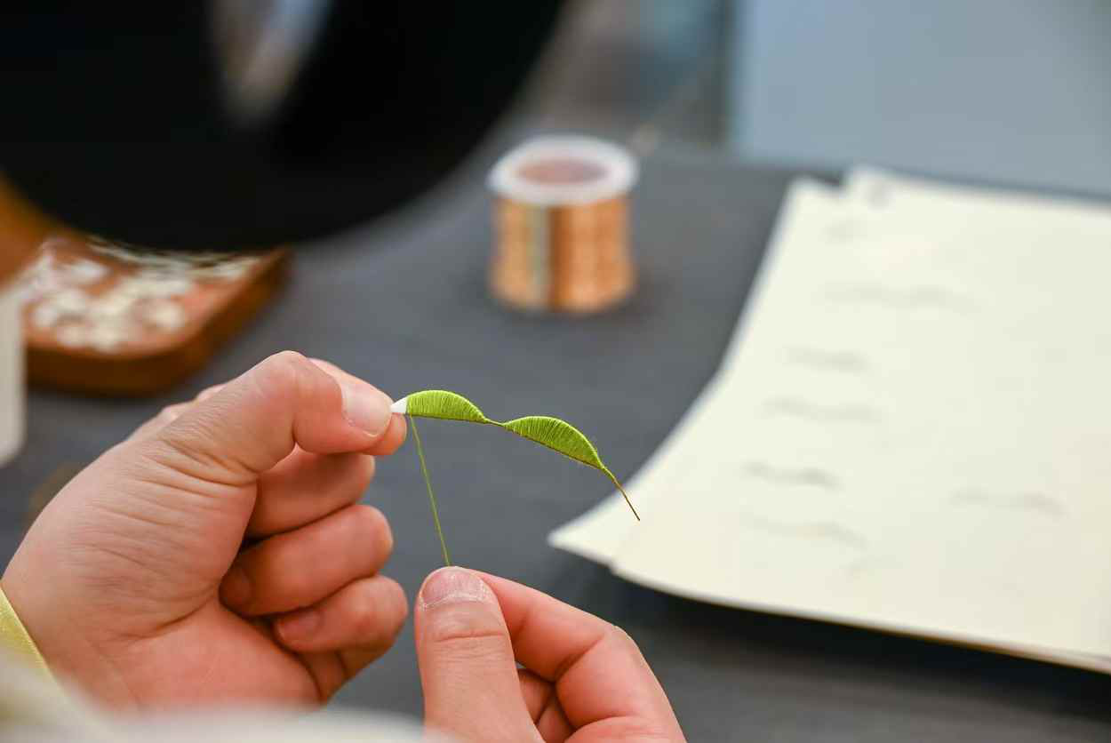 谢嘉妍老师组织非遗体验雅集,包括缠花、绷扇、荷包、销金等非遗技艺体验