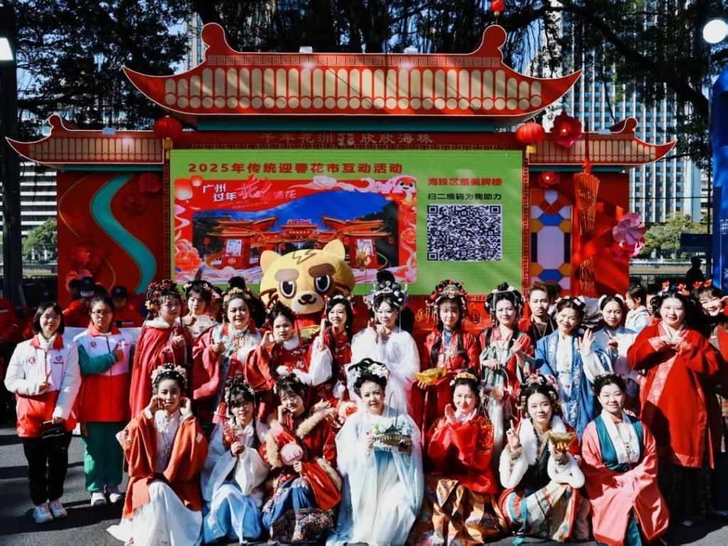 谢嘉妍老师组织汉服志愿者参与海珠滨江花市巡游,获央视直播宣传