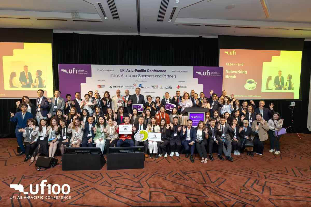 谢嘉妍老师(居中)在2025年国际展览协会亚太区会议上与参会成员合影