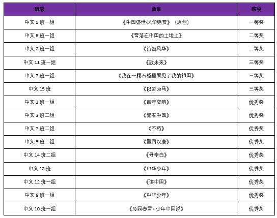 经过激烈的角逐,中文5班一组凭借原创作品《中国盛世·风华绝赏》,获得一等奖。中文6班一组凭借作品《雪落在中国的土地上》获得二等奖。中文3班一组凭借作品《诗颂风华》获得二等奖。