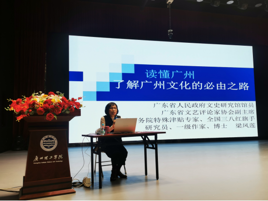 梁凤莲结合自身经历回顾了广州的历史变迁,通过政策解读与比较研究勾勒出广州文化的脉络,生动地呈现出了解广州文化的视野与方法,引起与会师生的强烈共鸣与互动交流。梁凤莲认为读懂广州在于对广州文化的认识程度,可以从历史分期、文化主体、文化品牌、城市空间、形成轨迹等方面去深入了解。
