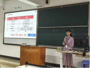 首先,张丽娜老师以《小学英语教学与研究》中的词汇教学为例阐述了教学设计和课堂管理的技巧,从教学分析、前端分析、教学实施、实施效果、创新特色等不同方面分析了词汇教学的影响因素及各类潜在问题。她主张互动性趣味性的课堂,以3P模式、双本双真、任务驱动为重点进行了生动形象的教学活动示例。其次,荆宏侠老师以中国现当代文学课程的《骆驼祥子》为例来进行了示范课堂讲授,通过说学情、说教学目标、说教学过程、说教学反思来论述自己的教学设计。她表示,通过语言特色分析、人物形象分析等课堂教学设计,结合邀请学生分享读后感、进行语言文本演绎等手段,以“学生先说、教师后说,学生多说,教师少说”等方式,可以引导学生尽量阅读原文、形成对作品和作家的全面认知。之后,《大学写作Ⅱ》课程组的秦苏老师以小说写作为主题,通过教材分析、学情分析、教学手段、教学设计以及教学反思论述了教学设计的各个环节,她以鲜明易懂的各类实际案例鼓励学生表现自身的开放思维与创造力,生动地、有针对性地阐释了小说情节设计、人物塑造等方面的技巧。