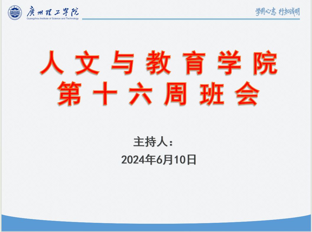 6月10日,人文与教育学校如期召开第十六周班会。班会伊始,班委严格遵循学校规定,进行班会点名,确定了到会学生的人数,落实未参会学生名单、原因及去向,严格落实遵循考勤制度,确保学生的安全。