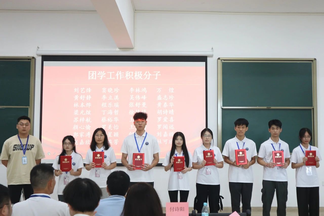主持人宣读获评团学工作积极分子、先进个人和优秀部门成员名单,并依次由付诗阳老师、李和平老师、陈新喜老师、刘亮书记进行颁奖。那一本本荣誉证书,如闪耀勋章代表团学对每一位奉献者的认可与鼓励,并非仅属个体,更承载着团学荣耀。团学成员应以优秀为榜样,提升能力,以激昂斗志,推动团学不断前行。