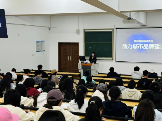 吕齐无尘老师在讲座中,深入剖析了腾讯在数字精准传播领域的创新实践及其对城市品牌建设的深远影响,从腾讯助力数字化转型,到城市品牌建设,通过一个个生动鲜活的案例,向在场师生展示了腾讯数字生态如何赋能城市,使其在激烈的区域竞争中脱颖而出,打造独树一帜的品牌形象。