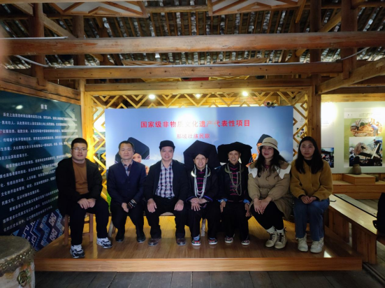 随后,调研组参观了黑衣壮民俗博物馆,深入了解了黑衣壮族的民俗文化和民歌文化。博物馆通过丰富的实物展品和图文资料,系统呈现了黑衣壮族的历史渊源、生活习俗、节庆活动和艺术成就。此外,课题组还实地考察了当地的干栏式建筑,观摩了传统壮族织布技艺,并与村民进行了深入交流,收集了宝贵的一手资料。