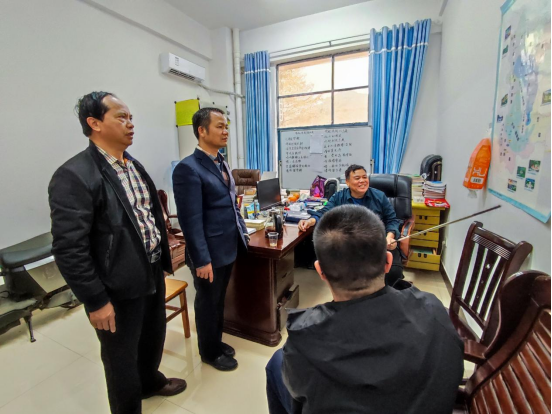 黄国观(左一)、李春建(左三)同调研组深入交流)