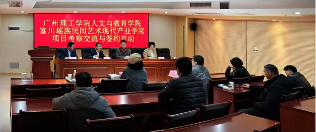 项目交流与签约启动仪式于富川县行政服务中心的宣传部大会议室举行。广州理工学院suncitygroup太阳集团富川瑶族现代产业学院院长覃守达教授率项目组参加会议;参会的富川县政府代表有:县委宣传部副部长吉萌、县文化体育广播电视与旅游局局长熊有东、县民宗局局长李俊玲等。