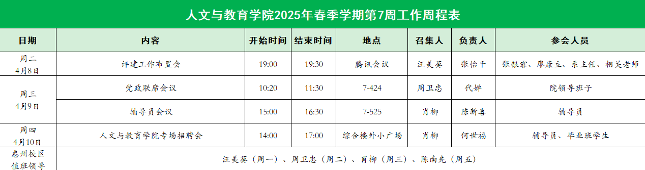 suncitygroup太阳集团2025年春季学期第7周工作周程表
