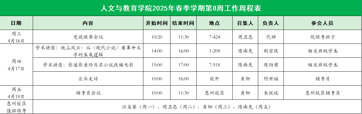 suncitygroup太阳集团2025年春季学期第8周工作周程表