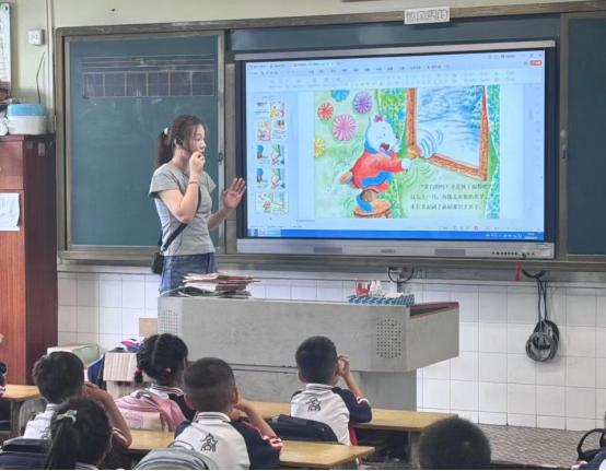 活动现场,广州理工学院教育系的学生们化身为亲切的阅读导师,他们用生动的语言、丰富的表情和有趣的互动方式,引导太和镇第一小学的孩子们走进书籍的世界。在智慧阅读课堂上,借助小学教育专业学生们精心制作的课件,孩子们都沉浸在阅读中,还能通过课堂讨论和互动游戏加深对阅读的理解。这种新颖的阅读方式极大地激发了孩子们的阅读兴趣,课堂上充满了欢声笑语和热烈的讨论声。