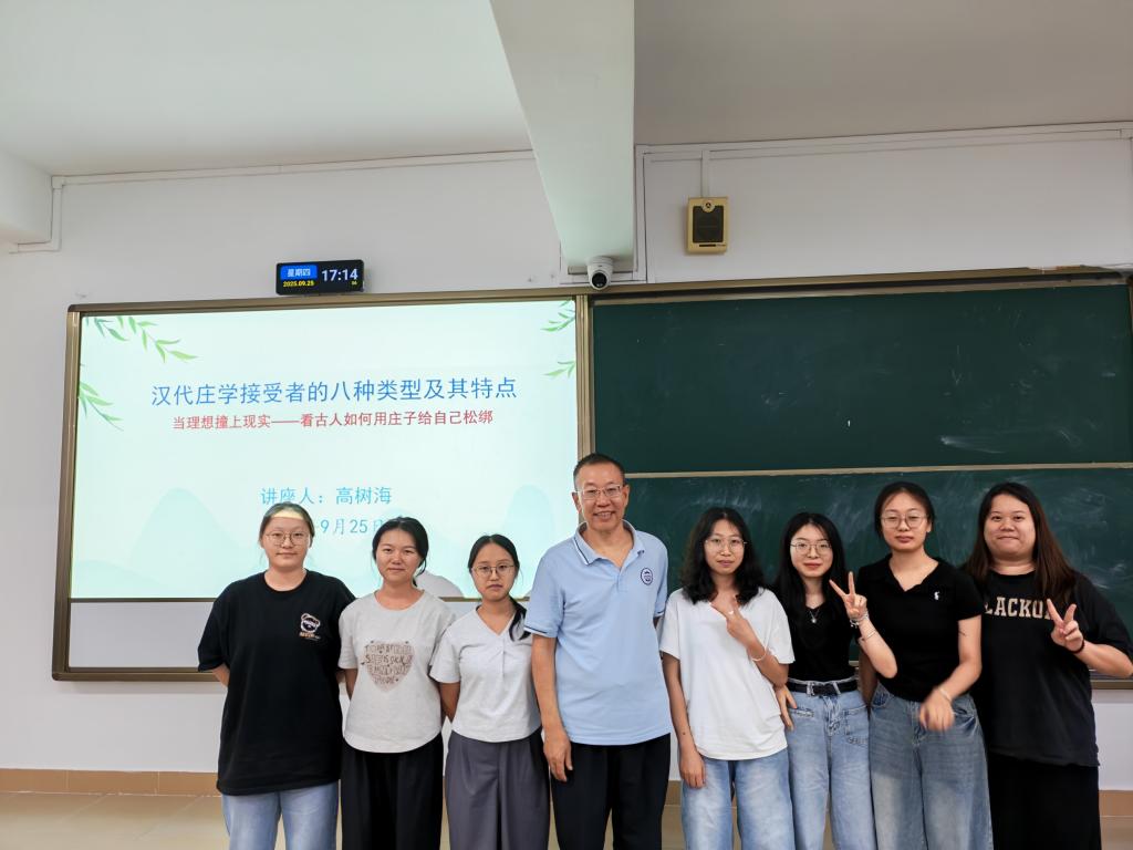9月25日,学校白云校区7-418展开了新一期的“广理大讲堂”系列的讲座。suncitygroup太阳集团特邀高树海教授为师生带来一场主题为“汉代庄学接受者的八种类型及其特点”“当理想撞上现实——看古人如何用庄子给自己松绑”的专题讲座,现场吸引了众多师生的主动参与,学术氛围浓厚。讲座由刘芷玮老师主持。