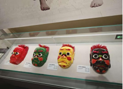 转过英歌舞展区拐角,湛江傩舞展区的神秘厚重气息扑面而来。墙面悬挂着色彩浓烈的傩舞服饰,红黑为主的纹样在暖光下更显庄重;玻璃展柜内,一个个傩舞面具静静陈列——有的獠牙外露、神态威严,有的眉眼含笑、憨态可掬,面具上的彩绘历经岁月仍鲜艳夺目。同学们纷纷凑到展柜前,一名同学轻轻按着玻璃,仔细观察面具边缘的雕刻痕迹;另一名同学则举起手机,反复调整角度,想拍下面具与背景服饰的同框画面,还不忘招呼同伴:“快来看这个‘方仲高’傩舞面具,眼睛亮闪闪的,在灯光下看着特别有神!”现场讨论声与相机快门声交织,大家生怕错过任何一处细节,指尖的寒意早已被对非遗文化的热情驱散。