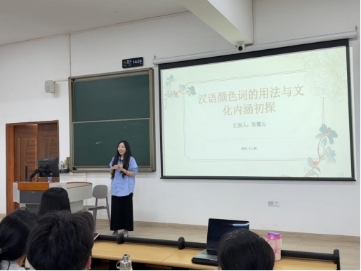 11月6日,一场题为“汉语颜色词的用法与文化内涵初探”的精彩讲座在惠州校区1栋教学楼308教室如期举行。本次讲座由张馨元老师主讲,为在场师生带来了一场融汇语言学与文化的思想盛宴。