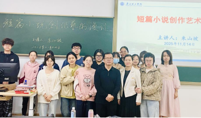 “文学创作从无捷径可走,但找对方向能让脚步更坚定。”谈及短篇小说创作,朱山坡先生将多年创作经验凝练成实用方法论,为在场学子指点迷津。