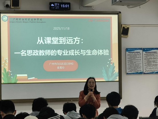 11月18日,广州理工学院6-415教室座无虚席,学院行业导师、小学教育专业客座教授麦雪玲以"从课堂到远方:一名思政教师的专业成长与生命体验"为主题,为师生们带来一场别开生面的讲座。作为广州市白云区龙归学校教导处副主任、广州市优秀思政教师,麦雪玲老师从教二十二年,以其丰富的教学实践经验和深厚的教育理论素养,为未来教师们展示了专业成长的路径。