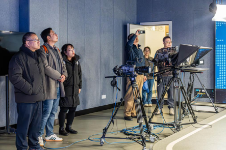 参观人文与外语学院的融媒体中心