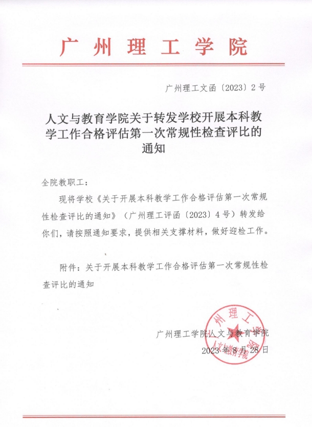 广州理工评函〔2023〕4号 关于开展本科教学工作合格评估第一次常规性检查评比的通知.pdf
