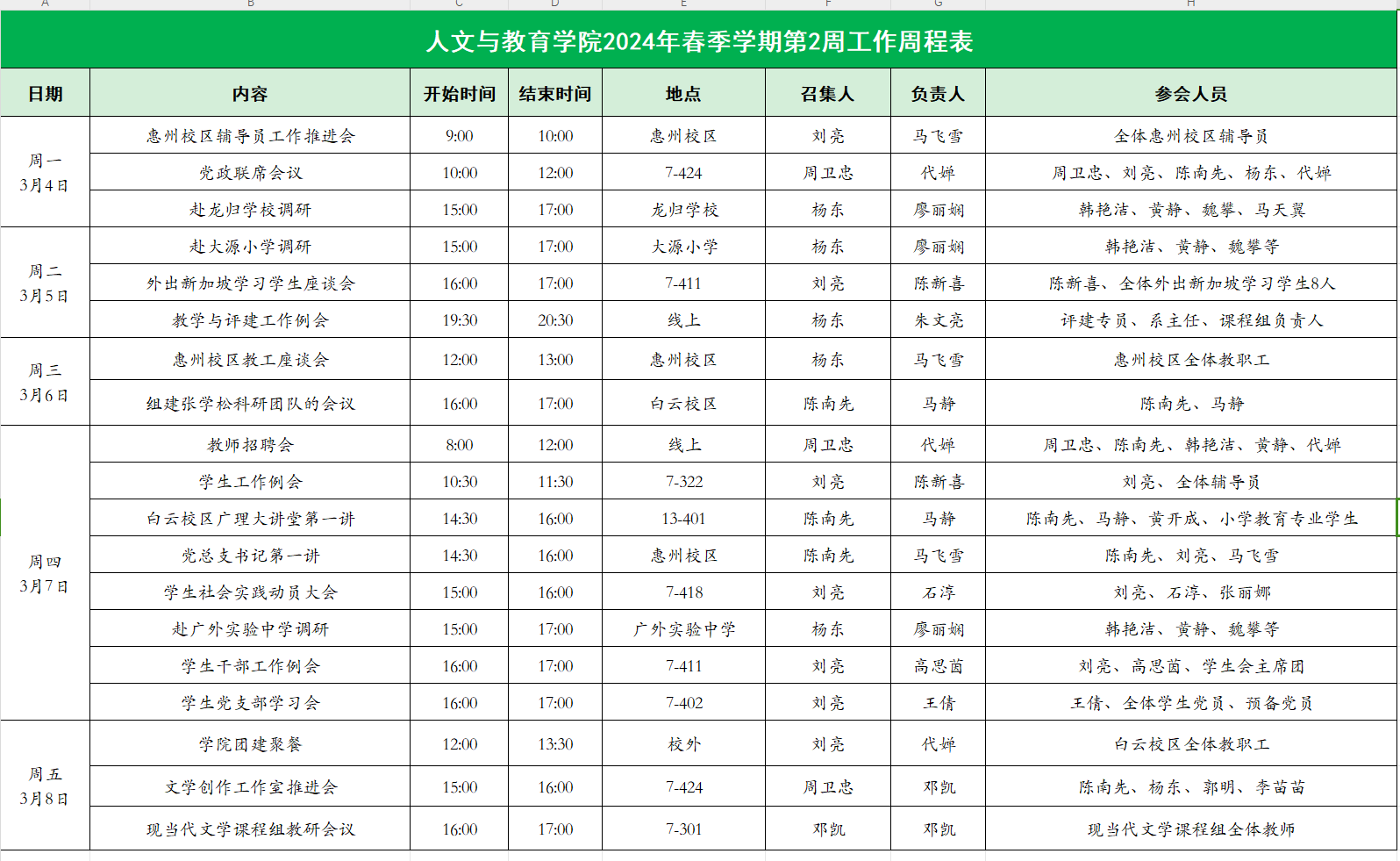 suncitygroup太阳集团2024年春季学期第2周工作周程表